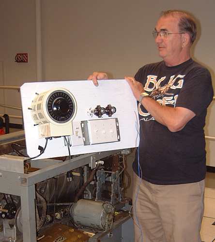 Ed Thelen brought a variable voltage 0-130 V AC, 0-180 V DC that - well - looked like home built. (The 729 tape drives have 140 volt power supplies.) Note that Ed Thelen is not shown standing behind his product, poor Don Cull got stuck with that job. :-(( ![]()
