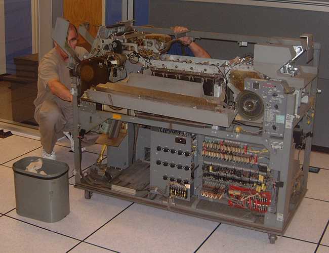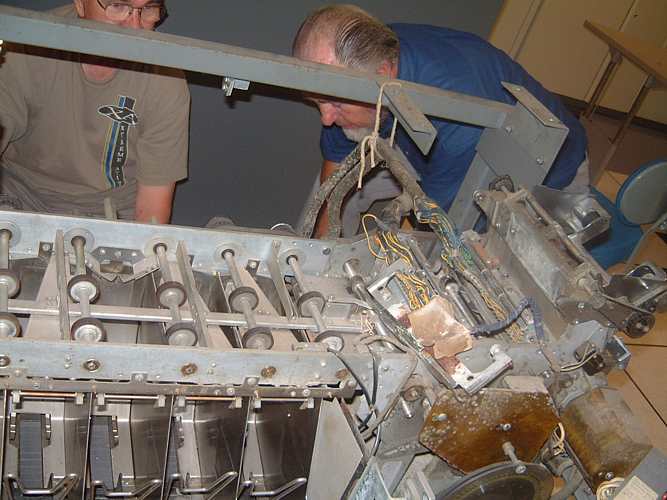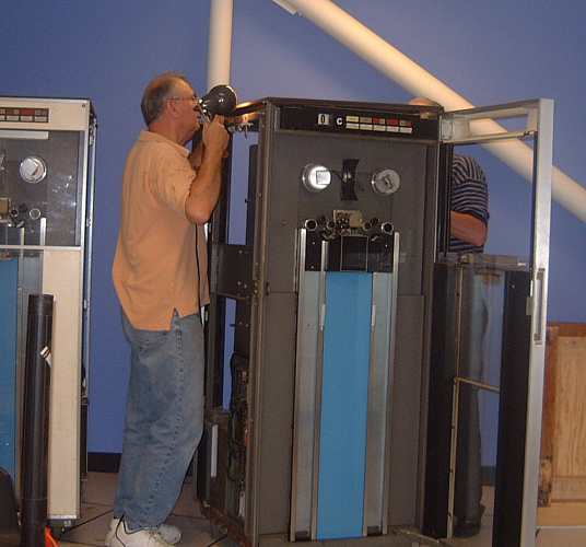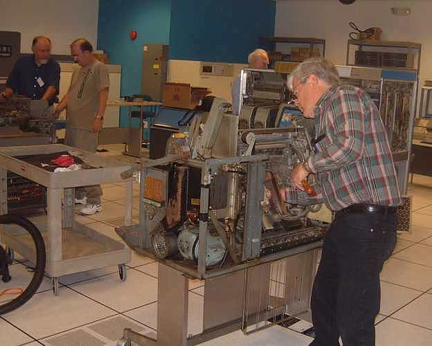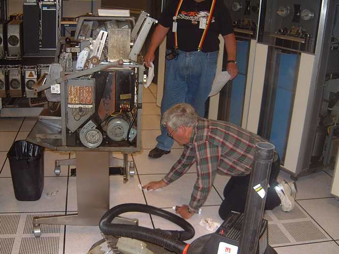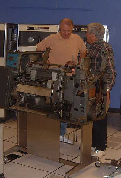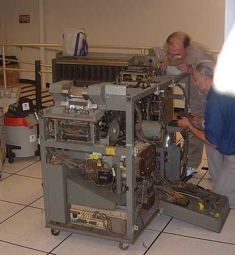 On the way in, Chris Garcia of the museum staff was bringing a Bob Brubaker into the building, so of course I had to suggest that Bob be brought into the 1401 area! Well - it turns out that Bob is an "old" IBM C.E. and was right at home with the now naked 1401 subsystems. He and the 1401 team spent hours looking at parts, trading knowledge, telling a few "war stories". Bob is talking with Paul Pierce about restoring a 709. Unfortunately, Bob is in town for only two days - ?he lives in Southern California? Bob Brubaker's e-mail address is BruBob@Primeris.com
