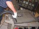 - extension cords - shop vacs - horizontal surfaces - table - cart - priority manual - binders that were left last Wednesday - and a vacuum with brush to try to get some of the oily dust off.