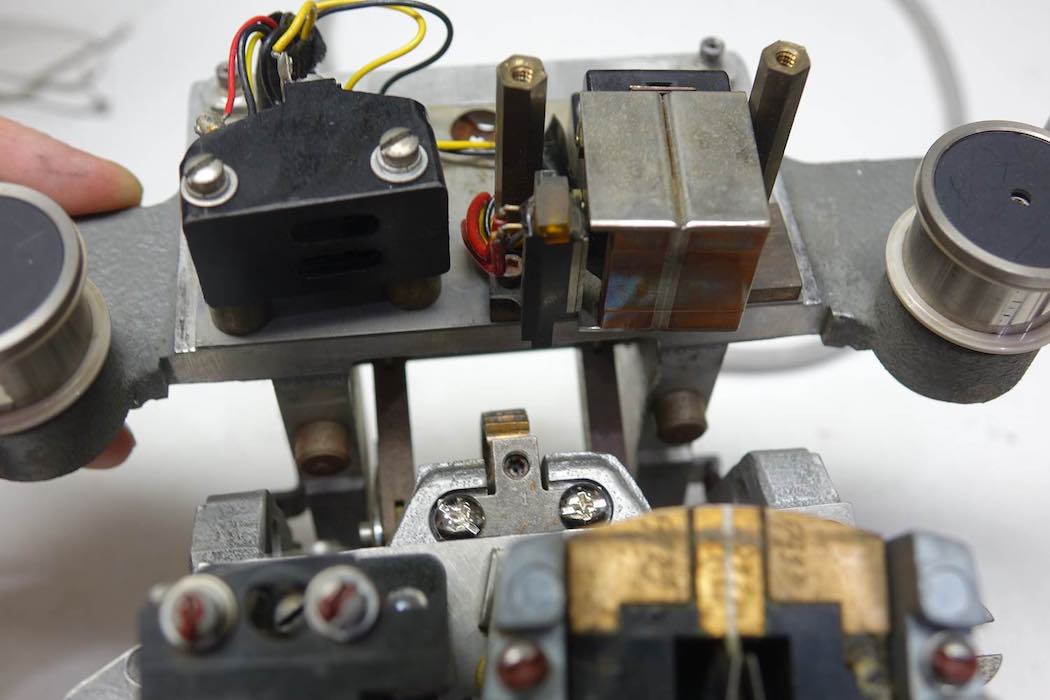 from Ken ShirriffFrank and I took a look at tape drive 1 on the CT machine today, with some help from Stan and Pat. It's failing to load the tape; the mechanisms move but the tape doesn't go down into the right column.