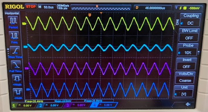 - After the demo, we measured the entire card cycle to be 65.5 ms. The theoretical cycle is divided into 32 11.25 degree slots each lasting 1.8 ms. The expected brush events are supposed to fall within those 1.8 ms windows. Looking at the timing of a functional pocket (#8) the grid pulses are indeed about 2 ms, so we have some confirmation of our understanding of the timing.