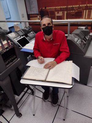 Frank checked the oil level in the IBM 1403 printer and found the oil level is correct. Frank started going through the demo programs for both systems.