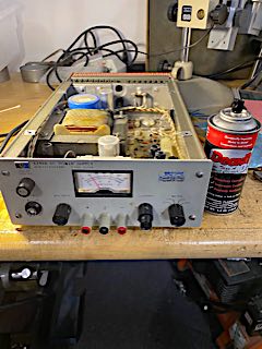 - While I had the bulb out, I thought I should try to test it by measuring its turn-on threshold. I went back to the workshop in search of a Variac or a DC supply that could produce a variable voltage in the ~80V range to "margin" the bulb candidates. The Variac looked pretty sketch and didn't have cabling that would be friendly for connecting bulbs to, but there was an HP 6299A that should do just the trick. I fired it up to find that the meter switch was clearly flaky. So I wasn't able to tell if the supply itself was working.