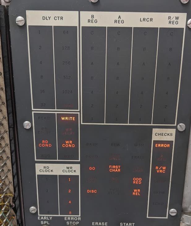 Today’s focus was on relay testing; neon bulb/light & fuse indicator issues in DE 729 #1 and the DE 1401’s TAU control panel. (as it's done before, DE tape drive #1 mysteriously and inexplicitly returned to life, satisfactorily performing tape loads. Relays!&^*%$)