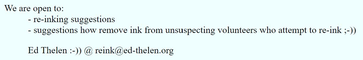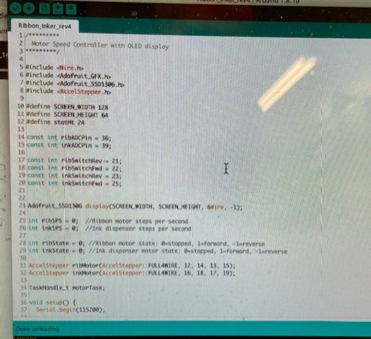 - I discussed ribbon inking with Stan. I will probably throw together a simple fixture to do some experiments to try to determine just how much ink a ribbon needs, and how fast and evenly it can be applied. So I borrowed a sample spool to make a 3D model of: