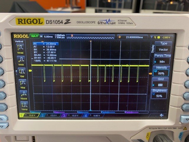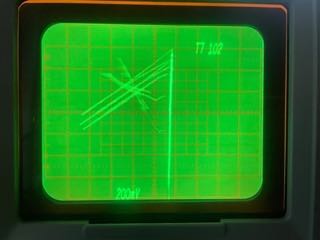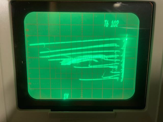 - Replacing the diode had no effect on the problem. Ken and I proceeded to look at the rail waveform on the scope and found an interesting thing: the rail is not actually DC, but AC. No wonder the DVM recorded only a few volts DC. We compared the waveform with the +62V rail on the CT#1 machine. It had a half-wave rectified waveform. After deep diving into the schematics, we found that the DE machine does not actually have any path from the diode's cathode to ground. In contrast, the CT machine's cathode has a ~6k resistor to ground. So on the DE machine, when the transformer voltage reverse biases the diode, the cathode is free to float below ground; there is nothing to hold it at ground potential. Adding an external 6k2 load resistor to the DE machine resulted in the same half-wave rectified waveform.