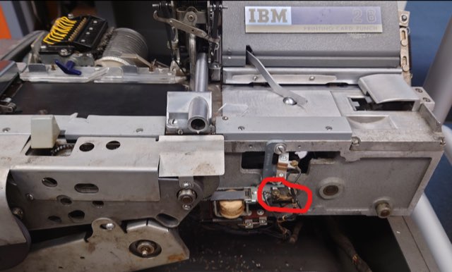 Replacing the relay changed the behavior of the machine. It would no longer report every read-check brush as a source of error. It was, however, showing read brush errors on brush #3, still -- this has been an ongoing issue. The CPU would show the data read erroneously as either a check-bit or a word-mark where it should show a 5. Read brush #3 was seated rather oblong vertically and it is important to note that it has been replaced multiple times already...