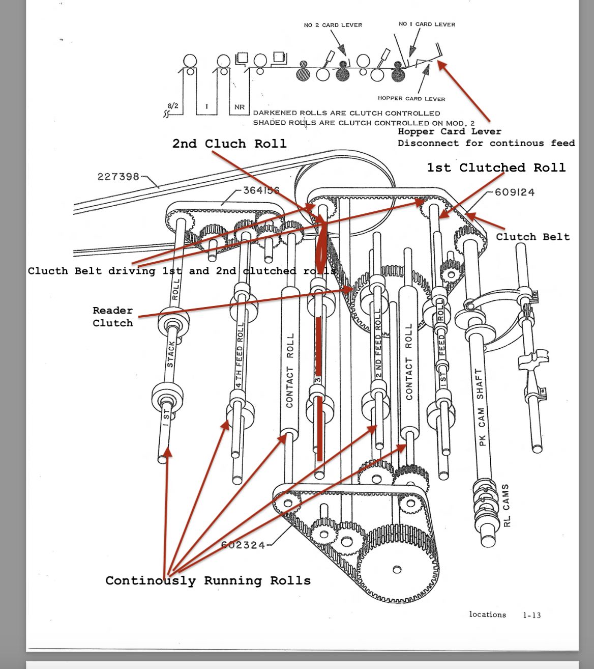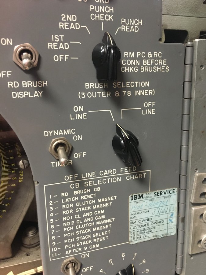 Due to the enormous crowds, both 1401's were running most of the day until 4:30 or so when the CT1402 started crunching cards again. I performed our standard N-PRO card-lever test and sure enough, the clutched roller behavior wasn't "stepping" the way it should. So, we'll need to revisit the relays.