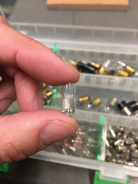 - 100 replacement neon bulbs arrived from Amazon and checked out okay for size and color. So we have lots of spares, and they are easy to replace. A background task would be to replace all of the neon bulbs. starting with the obviously dead ones.