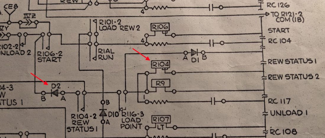 - The drive select switch on DE#2 was really dirty with lint and would cause the unit to select regardless of the switch setting. It also would select and deselect as the switch was wiggled. A generous squirt with compressed "air" followed by Deoxit fixed it. We should probably clean and condition the switches in all of the units.