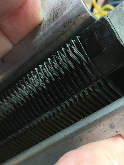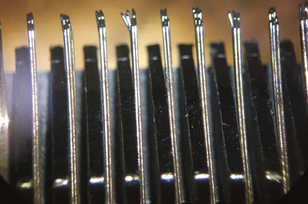 All told, the brushes aren't that bad. As you can see above, it is obvious when a brush is bent under heavy magnification; I replaced six or so brushes, made myriad adjustments and burnished the edges.