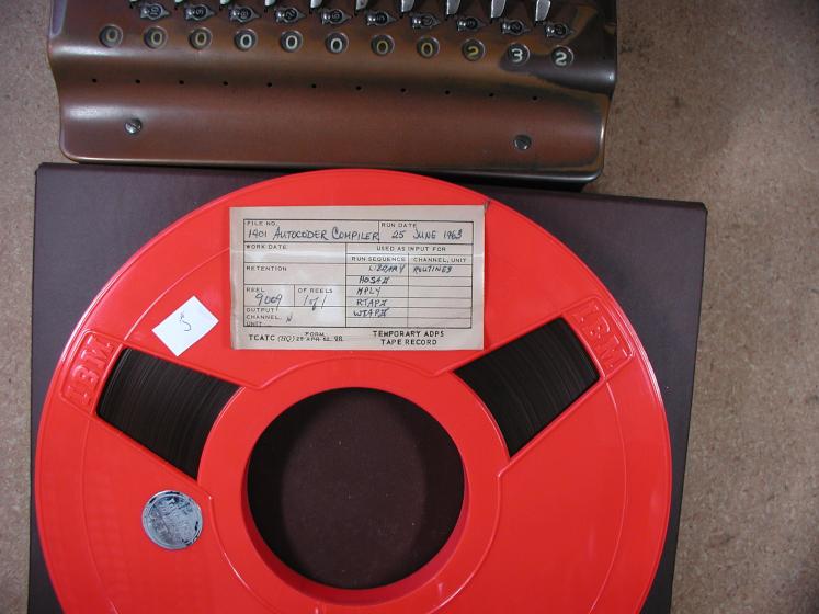 1401 AUTOCODER COMPILER --------------------------------------------------------------------------------Label: J Label: 1401 AUTOCODER COMPILER 25 JUNE 1963 9009 1 of 1 LIBRARY ROUTINES HOSA* MPLY RTAP* WTAP* Label: IBM Tested at 556 BPI Note 08 Jul 2008 This tape is part of the Connecticut 1401 donation to the Computer History Museum. Note 08 Jul 2008 Label form text omitted from label2 for clarity. Downloads 1401 AUTOCODER COMPILER data, BCD character per byte, 68 831 bytes Related class: 7-track Magnetic Tape class: System Software for: IBM 1401 Last updated 08 Jul 2008 -------------------------------------------------------------------------------- Library Home Collection Home