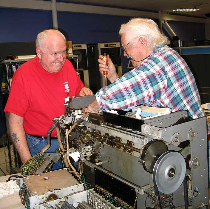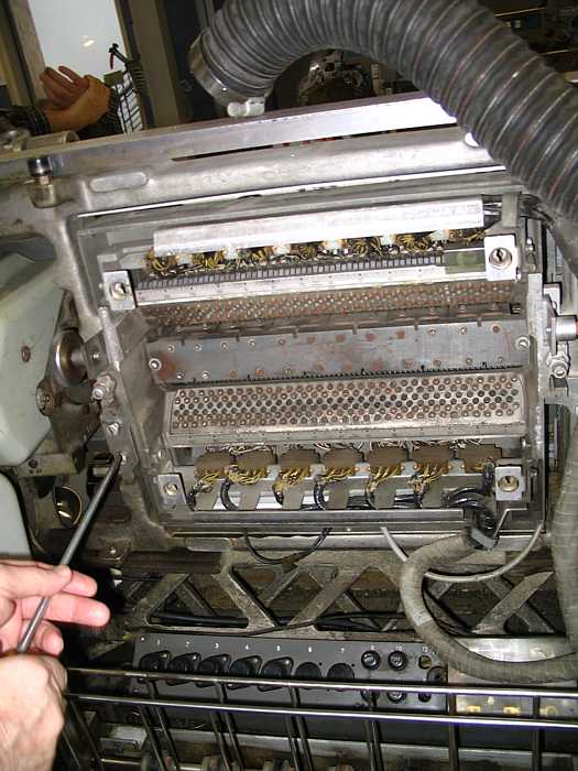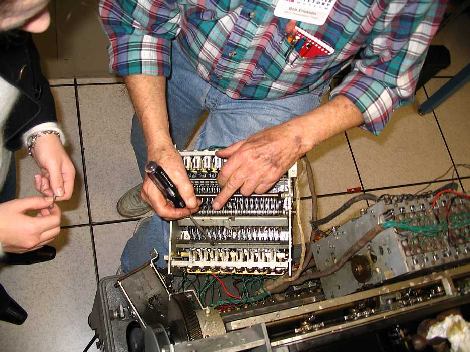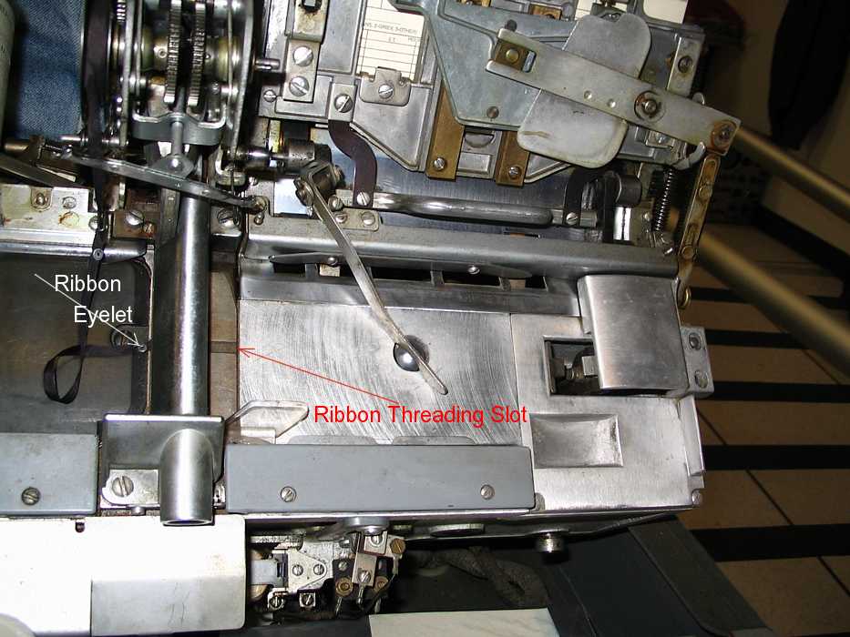 | Bob Erickson is preparing to thread the 026 ribbon through the threading slot.