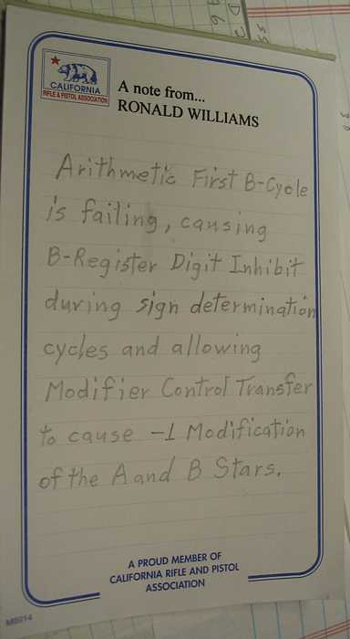 | I asked Ron Williams what he fixed (by card replacement - bad transistor) to make