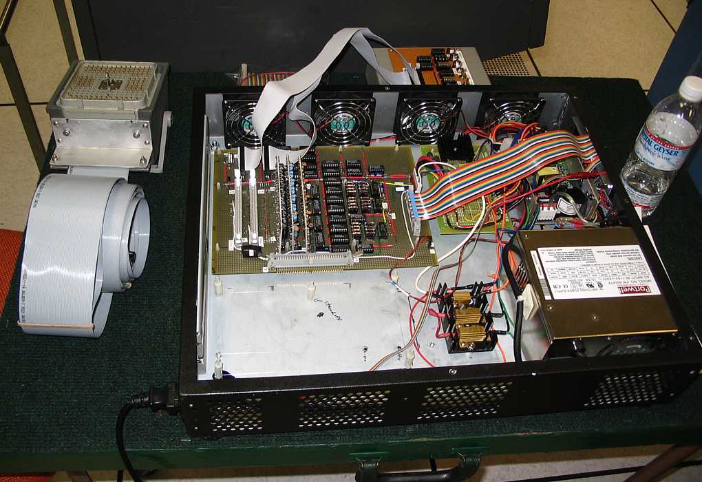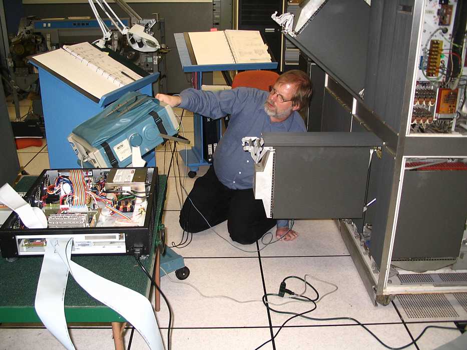 - Ron Williams and Bob Feretich pressed on with debugging instruction overlap logic, while trying to keep many the guests ammused by running the 1402 card reader at 800 cards/minute (13/second) and the printer at 600 lines/minute printing powers of 2