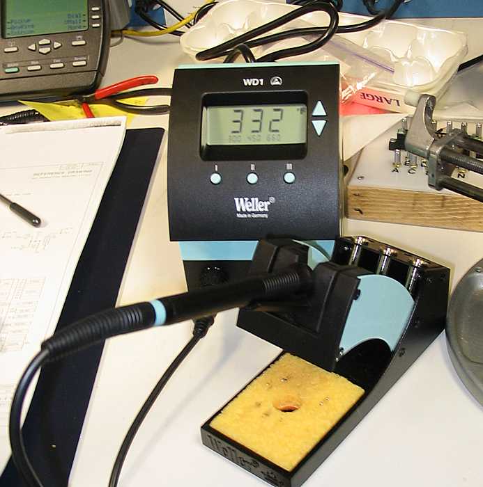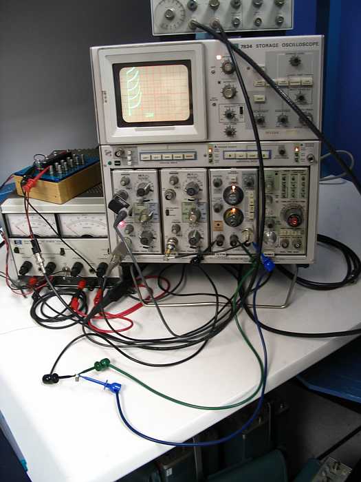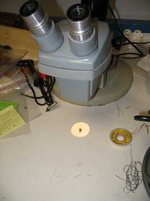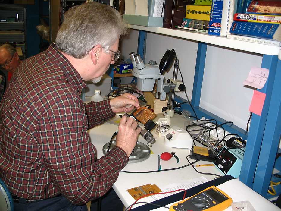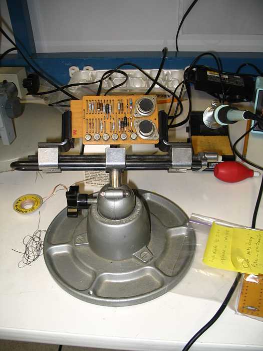 Grant Saviers brought in power supplies, signal sources, a "third hand" and a binocular microscope for a proposed improved card test station