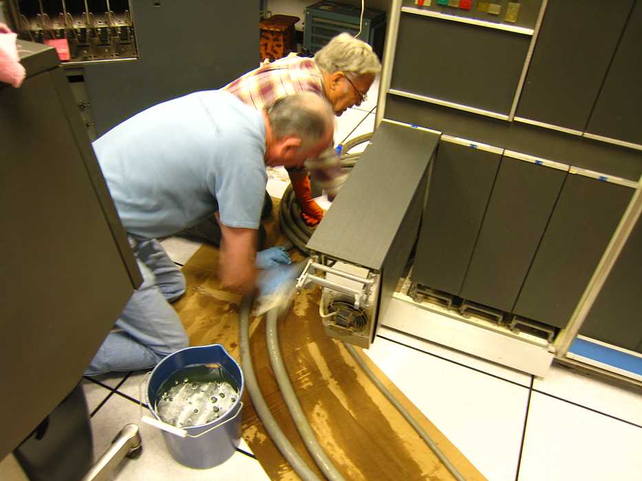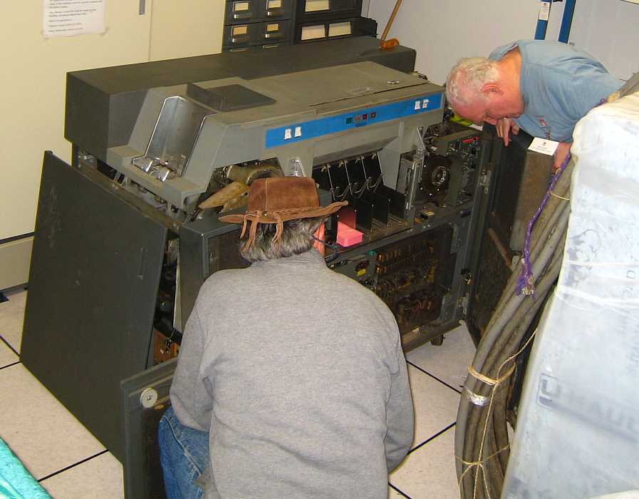 - When Bob Feretich took over the + 60 volt capacitor testing above, I wandered over to the six Connecticut 729 mod 2 tape drives, They are not very pristene!! I played with a side panel that didn't stay on. Glenn and I eventually
