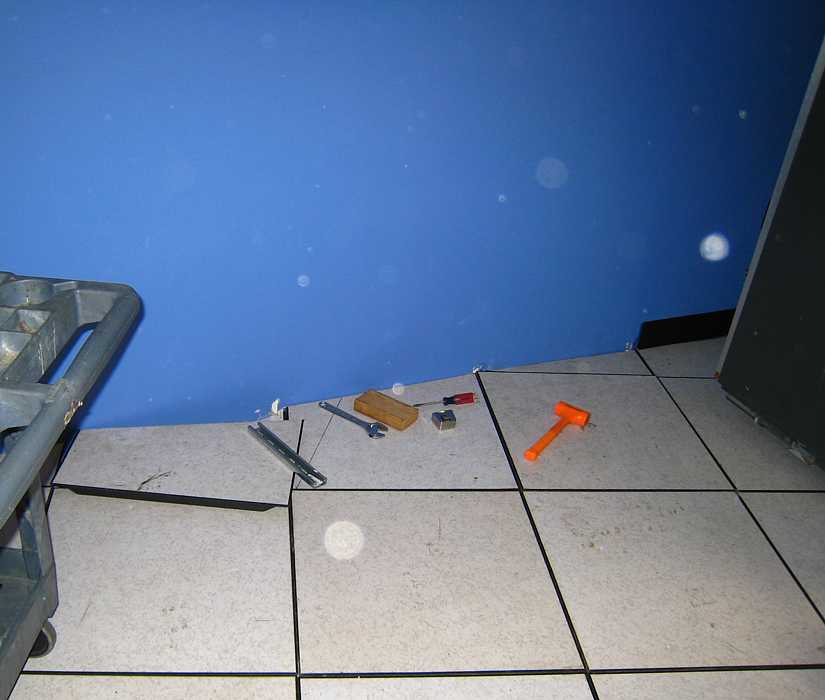 Ed likes to be near the critical path, to stay hired, but works hard to keep off the critical path, to sleep easily and have fun ;-))- When we left the floor tiles after removal of the west wall Liebert air conditioner, see here, the edge was weak and mostly with in 4 inches of the wall.