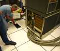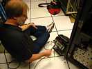 - Stan Paddock, our jack of all trades, and floor layer, worked to replace some slightly thicher raised floor "tiles" with "new" thinner ones. The different thickness although less than 1/4 inch, is disconcerting, and a tripping hazzard to those of us who shuffle along rather than high step ;-))