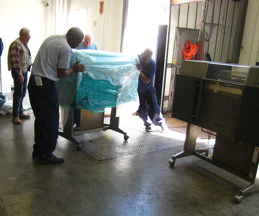 Off the dollies, onto pallets, and checking what's in 'em ![]()