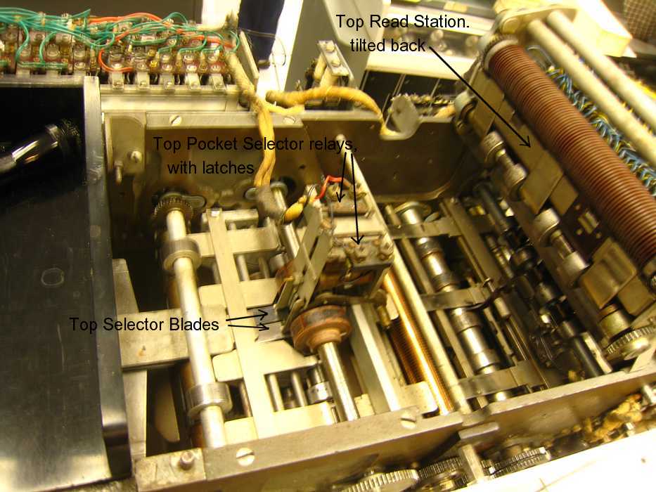 - Ron Williams and others are farther along in making the CT 1402 card reader work as designed. There is supposed to be an about 3 second delay on starting to read to allow the cards from the top long chute to get into the read hopper that normally holds about 150 cards. This delay has not worked properly since we got the machine - almost every component in the Resistor Capacitor based three second delay circuit has had problems - including an open diode (broken lead). Now they are looking for an adjustable 1000 ohm 2 watt resistor.