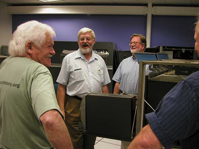 - Dr. Mike Williams dropped by to visit with the troops. Mike had been CHM Head Curator a few years ago. He has since served as (roving?) editor of the IEEE computer publication "Compute". This is a 2004 photo, Mike in the left center. And a 2004 photo, Mike on the right.