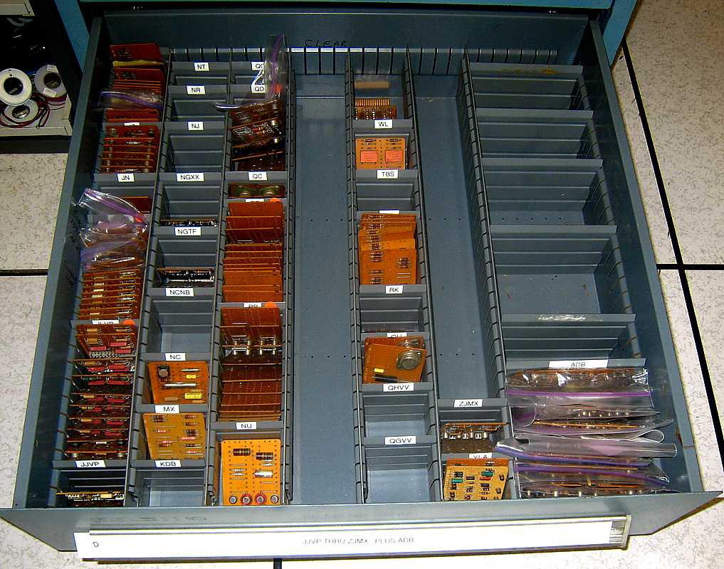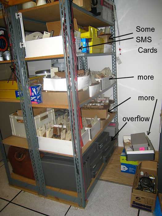 Jim has some wild and wooly tales of debugging new microprocessors. Looking for photons sometimes emitted when electrons and holes re-unite, looking for 2 volt changes in surface charges with electron probes, making holes (with e-beams?) through the back of silicon substrates to "look at" deeply buried structures. I hope I remembered the above relatively correctly.- Back to SMS card storage, inventory, accessibility - Maybe we are not utilizing the existing drawers fully -