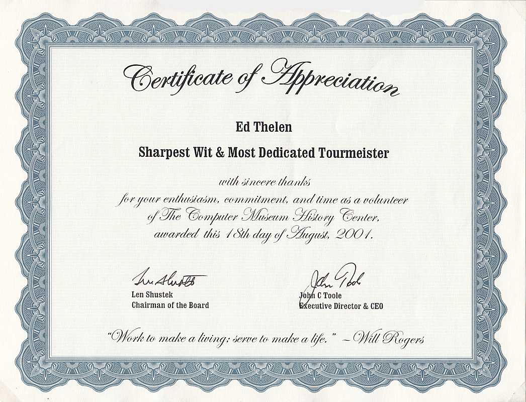 Jim was a regular docent, frequently showing the IBM 1401 systems, and also founder and editor, of Volunteer Information Exchange, index hosted by the Computer History Museum. - Jim's first issue, in 2011, and last issue 2016