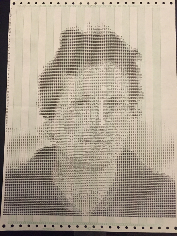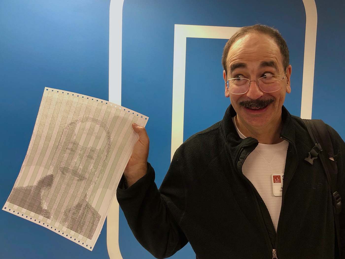 Marc is holding an ASCII picture of himself printed on the 1401.