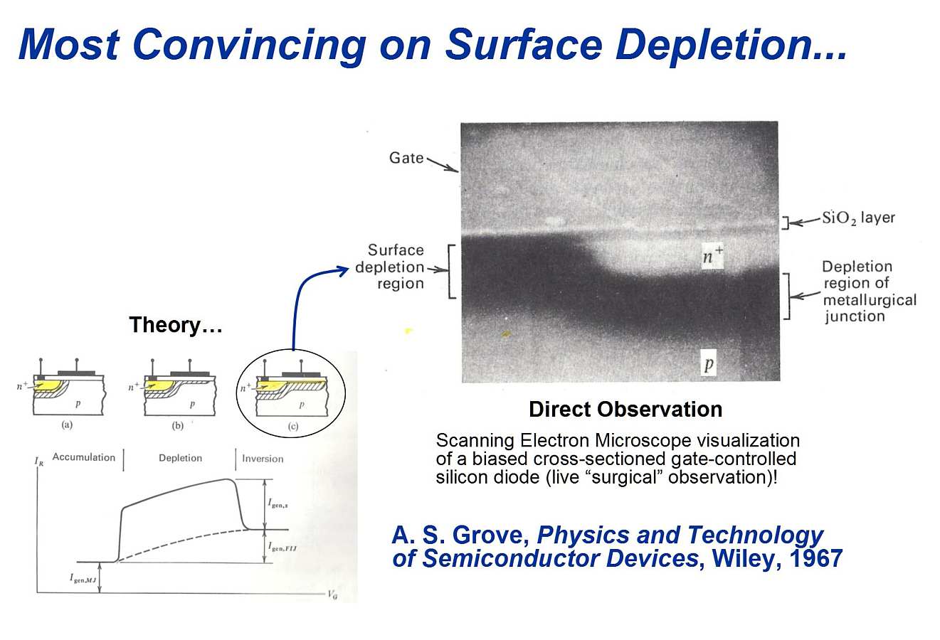 The experimental tools we had were primitive compared to those even a few years later when we came first to really understand silicon junction passivation by oxides and through that to have some affirmation of what was deduced from primitive experiments for unprotected silicon and germanium junctions. There were some very early lessons from the solid logic technology (SLT) planar transistors used for the IBM 360. The theory of that design was that the transistors were protected by a low temperature powdered glass layer put onto the surface and then melted to give a hermetic seal to the junctions. This in theory would stabilize the transistors, but the theory didn't work because sodium atoms in the SiO2 layer lying under the frit glass layer were mobile ... unless the transistors had that locked up in a phosphosilicate glass layer from the emitter on NPN transistors. PNP transistors didn't have problems with surface inversion and were stable without the psg layer. That really didn't come out in technical publications until the advent of field effect transistors where the role of sodium in the SiO2 layer was a major issue in controlling both leakage and threshold voltage. IBM used PSG, while Intel and others essentially eliminated sodium by lots of washing before any thermal cycle which could lock fingerprints or other sodium contamination oxides.