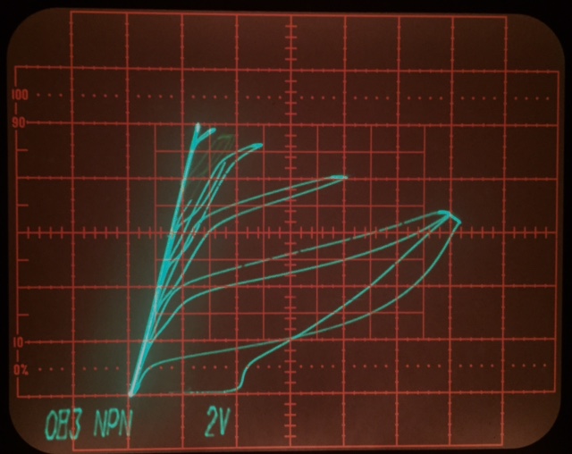 A transistor on this tester should NEVER give any loops on any setting and the transistors on these cards are the first time I have encountered this! It means, for some reason, the transistor is stopping conduction far differently than it starts conduction. My suspicion is a thermal effect as I have seen many of the loops change size/shape the longer I leave the transistor on the tester.