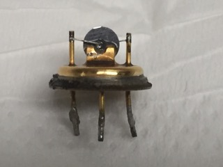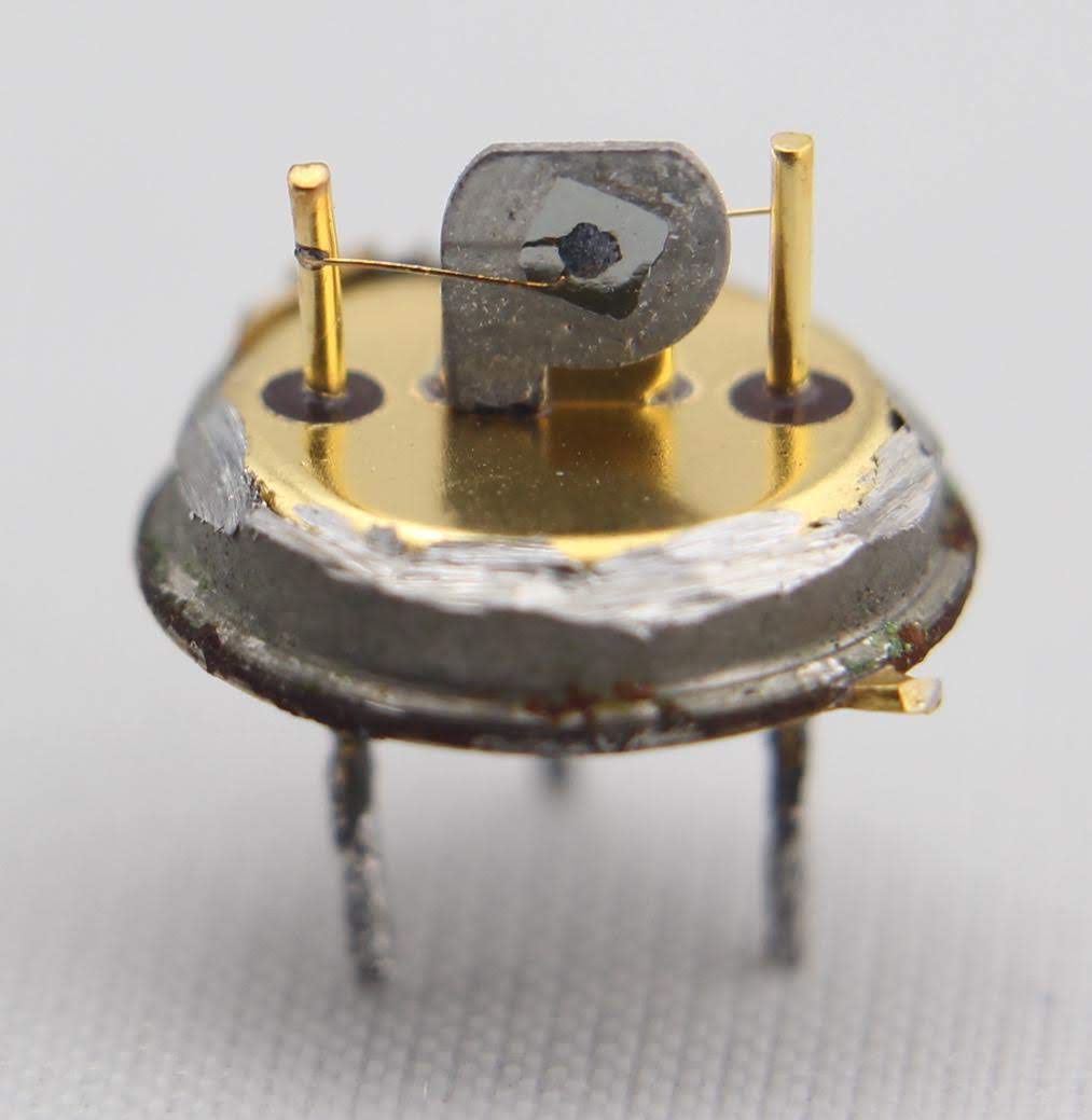 So we have a lightly doped base region. I don't know what etchants were used, but the final etch and blow dry would be intended to leave the surface in a low leakage state at both emitter and collector. The reason for the glass metal lead header and soldered cap was to hermetically seal the transistor in an environment where it wouldn't be subject to changing moisture and other contaminants. It worked remarkably well for many years.