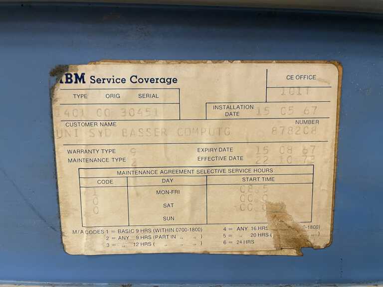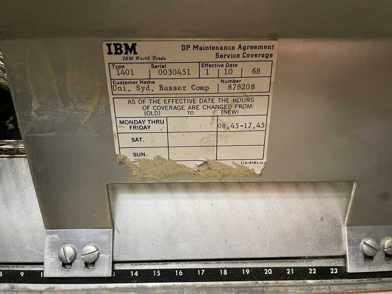 So far, based on serial numbers, it appears that this 1401 is the oldest found "in captivity" - although CHM curators have yet to chime in re:their machines in storage. We also understand that a major design change was implemented starting with serial number 25000 - suggesting the team could be in uncharted territory until we can find additional documentation.