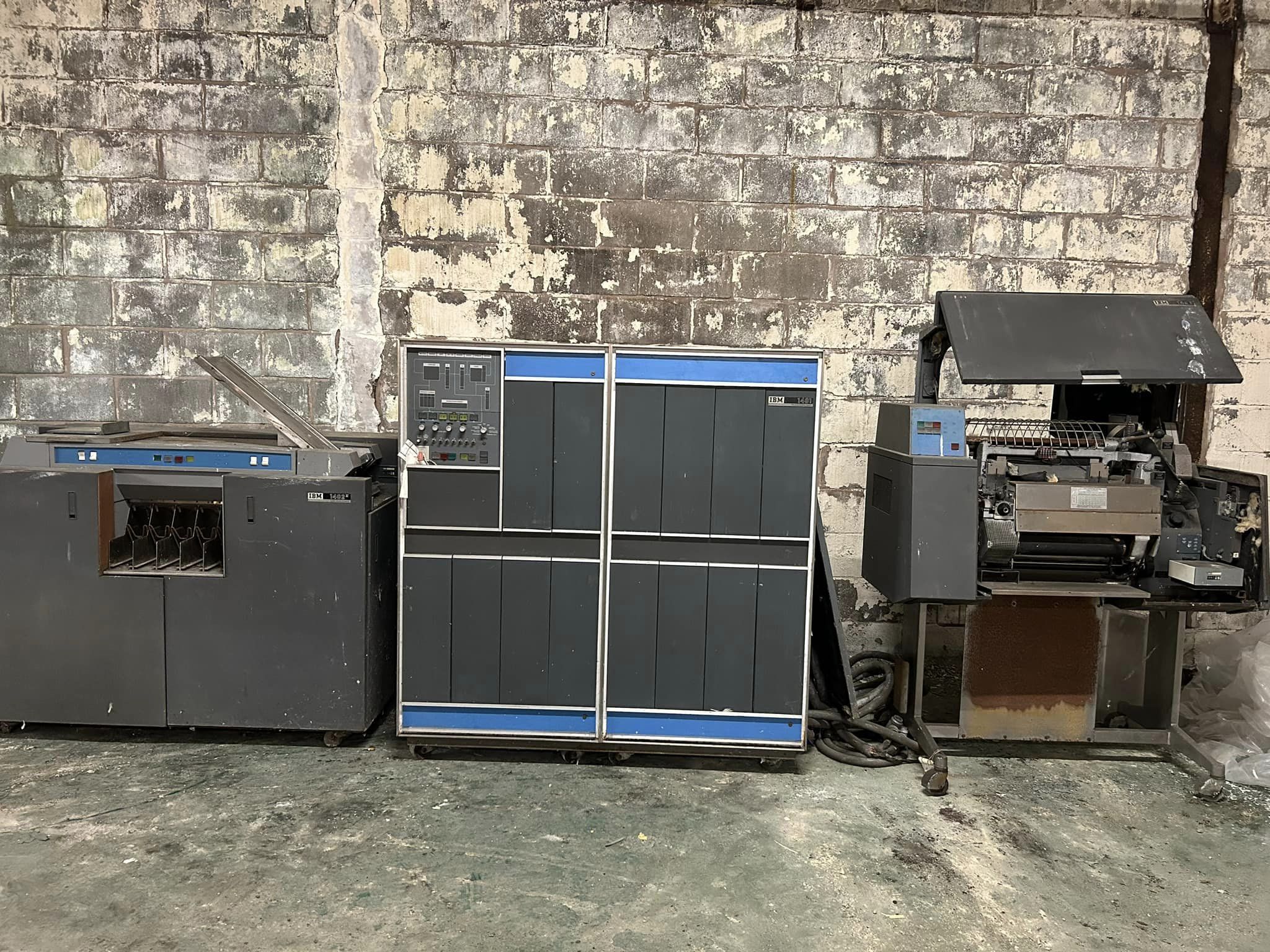 Here's a photo of the 1401 in the IBM archives that Frank & I saw back in 2008, at that time in Fishkill. It's almost too sad to look at. It appears as though it was modified for some other purpose. I now wonder if there's another behind it?